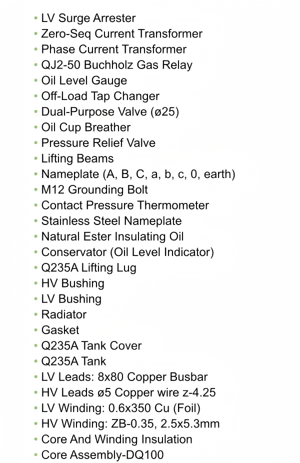 The 1500kVA three-phase oil-immersed transformer has a relatively large capacity, making it suitable for medium-to-large industrial production, commercial centers, public facilities, and regional energy distribution where high power demand is required.